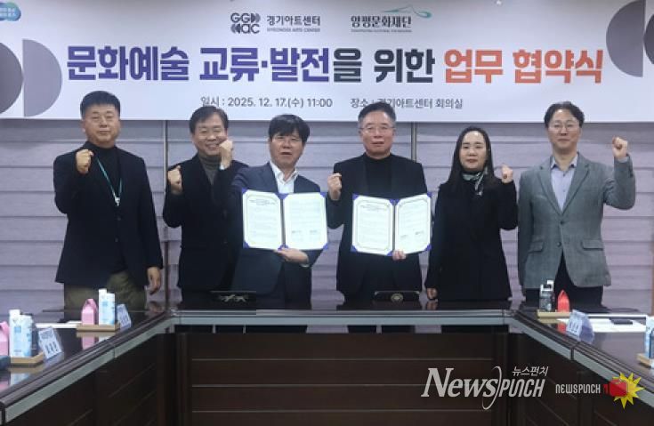 뉴스펀치 김길룡 기자 | 양평문화재단과 경기아트센터는 지난 17일 오전 11시 경기아트센터에서 문화예술 교류 활성화와 지역 문화 예술 발전을 위한 업무협약(MOU)을 체결했다.