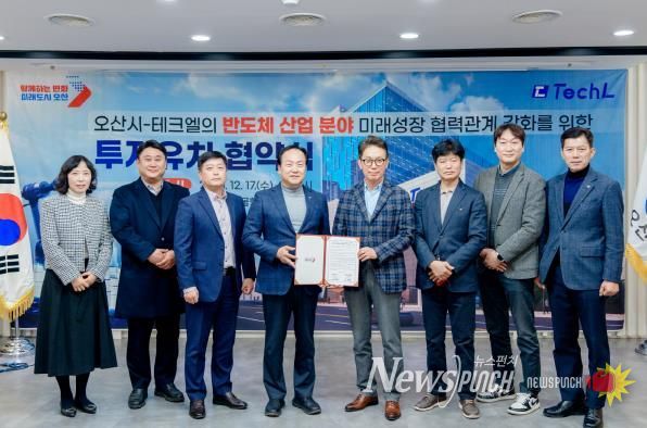 뉴스펀치 김길룡 기자 | 오산시가 지난 17일 반도체 후공정 패키징 전문 기업인 ㈜테크엘과 본사 확장 이전 및 신규 투자를 위한 투자유치 협약(MOU)을 체결했다.