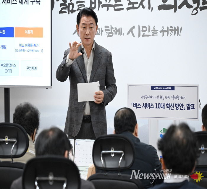 뉴스펀치 김길룡 기자 | 의정부시는 12월 18일 시청 브리핑룸에서 ‘버스 서비스 10대 혁신 방안’을 발표하고, 시민이 가장 많이 이용하는 대중교통 수단인 버스의 서비스 수준을 전면적으로 개선하는 정책 방향을 제시했다.