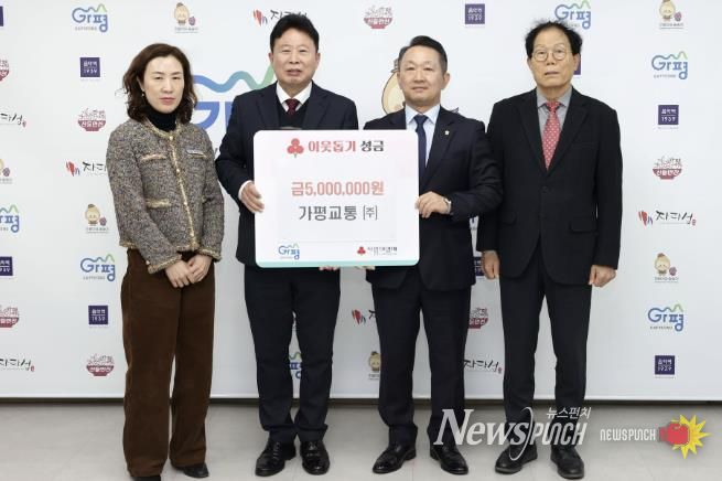 뉴스펀치 김길룡 기자 | 가평교통㈜는 17일 가평군청을 방문해 이웃돕기 성금 500만 원을 기탁했다.