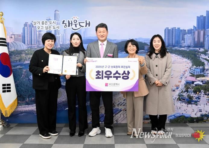 뉴스펀치 김길룡 기자 | 해운대구는 부산광역시가 주관한 ‘2025년 구·군 보육정책 추진실적 평가’에서 최우수상을 수상했다.