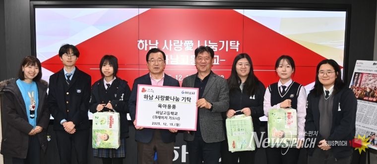 뉴스펀치 김길룡 기자 | 하남시는 지난 15일, 하남고등학교 1학년 학생 29명이 고교 특성화 사업을 통해 발생한 수익금으로 취약아동을 위한 육아용품(기저귀 3세트)을 기탁했다고 밝혔다.