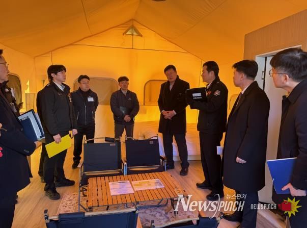 뉴스펀치 김길룡 기자 | 아산시는 겨울철 야영장에서 발생할 수 있는 화재와 일산화탄소 중독 등 안전사고를 예방하기 위해 18일 문화체육관광부, 충청남도, 아산소방서, 한국전기안전공사 등 관계기관과 함께 합동 안전점검을 실시했다.