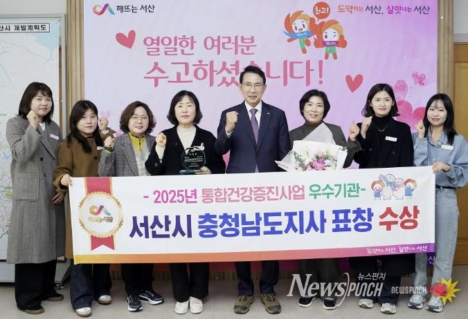 뉴스펀치 김길룡 기자 | 충남 서산시는 2025년 통합건강증진사업 우수기관으로 선정돼 충청남도지사 표창을 받았다고 밝혔다.