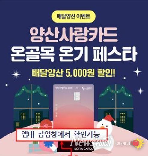 이 행사는 시민들의 연말 소비를 양산사랑카드 사용으로 유도하여 소상공인 매출 증대에 실질적인 도움을 줄 것으로 기대된다. 먼저, 오는 12월 20일(토)부터 25일(목)까지 6일간 양산사랑카드 자체 배달 앱인 ‘배달양산’ 이용자를 대상으로 온기쿠폰을 지급한다.
