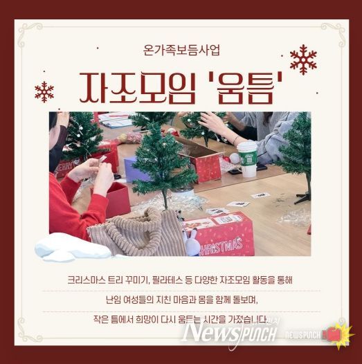 뉴스펀치 김길룡 기자 | 인천동구가족센터(센터장 박미희)는 난임 여성의 심리적 부담을 줄이기 위해 온가족보듬사업 자조모임 ‘움틈’을 11월 14일~12월 12일까지 운영했다고 밝혔다.