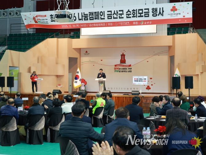 뉴스펀치 김길룡 기자 | 금산군은 지난 18일 금산종합체육관에서 충남사회복지공동모금회가 주관하고 금산군이 후원하는 희망2026 나눔캠페인 순회모금행사를 성황리에 개최했다.