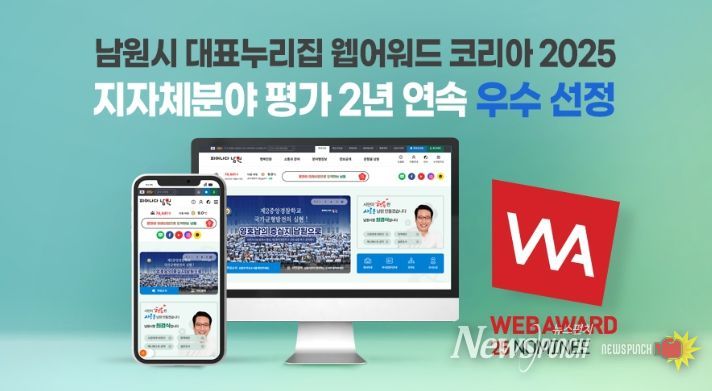 뉴스펀치 정홍균 기자 | 남원시 대표 누리집이 사단법인 한국인터넷전문가협회가 주최하는 ‘웹어워드 코리아 2025’에서 2년 연속 지자체 분야 우수에 선정됐다.