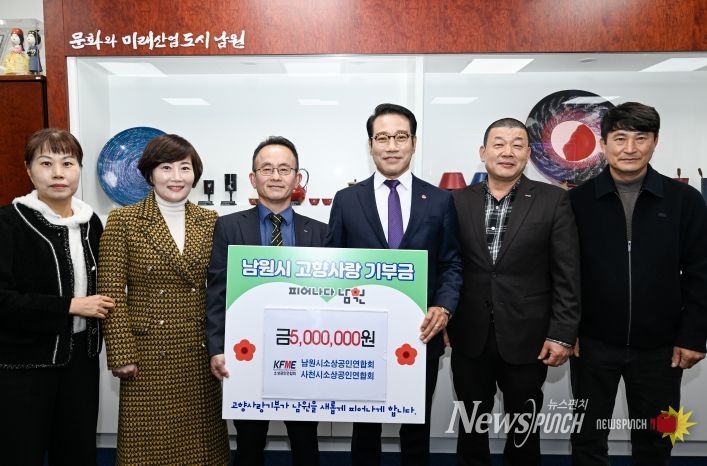 뉴스펀치 정홍균 기자 | 지난 18일, 남원시소상공인연합회(회장 강상남)와 사천시소상공인연합회(회장 김도준)가 상호 지자체에 고향사랑기부금 500만원을 전달하면서, 어려운 경제 여건 속에서도 지자체 간 경제협력을 공고히 하고 지역상생을 도모했다.