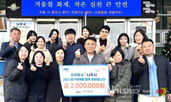 뉴스펀치 김길룡 기자 | 전라남도 나주시는 지난 17일 나주시 세무과와 제주특별자치도 서귀포시 세무과 직원들이 고향사랑기부금 상호 교차 기부에 동참했다고 밝혔다.