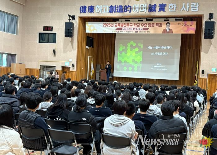 뉴스펀치 김길룡 기자 | 김포시가 교육발전특구 특화 교육 사업의 일환으로 관내 고등학생을 위한 ‘2025 교육발전특구 학교 수요 맞춤 특강’을 운영했다. 이번 특강은 학생들이 원하는 과목(과학, AI)에 대한 통찰력을 높이고 미래 진로를 구체적으로 탐색할 기회를 제공하는 데 중점을 두고 기획됐다.