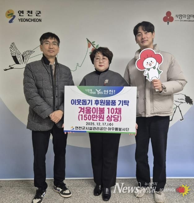 뉴스펀치 김길룡 기자 | 연천군시설관리공단 아우름봉사단은 지난 17일 연천군청을 방문해 연말연시 관내 취약계층 지원을 위한 150만원 상당의 겨울이불 10채를 기탁했다.