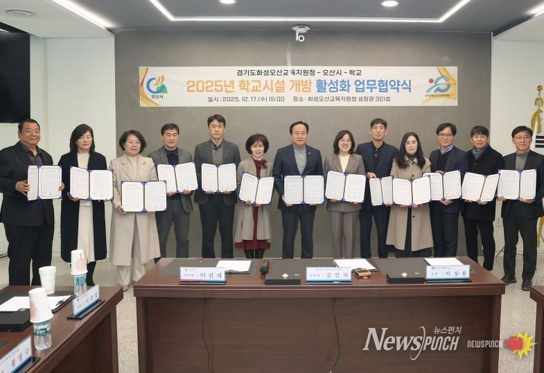 오산시는 지난 17일 화성오산교육지원청 성장관에서 화성오산교육지원청과 관내 초·중·고 15개교와 ‘학교시설 개방 활성화 업무협약’을 체결했다고 밝혔다. 이번 협약으로 학교시설 개방 참여 학교는 기존 9개교에서 15개교가 추가돼 총 24개교로 확대됐다.