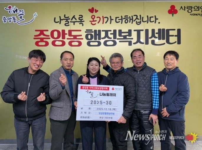 백경희 중앙동장은 “올해도 변함없이 따뜻한 나눔을 실천해 주신 오산오일장상인회에 깊이 감사드린다”며 “기탁해주신 성금은 도움이 필요한 이웃들에게 맞춤형 복지로 연계해 촘촘한 인적·물적 안전망을 구축하는 데 활용하겠다”고 밝혔다.