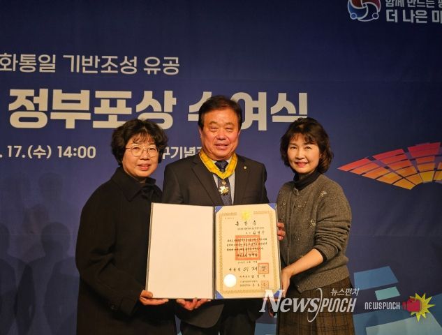 뉴스펀치 김길룡 기자 | 제22기 민주평화통일자문회의 밀양시협의회 김영진 회장이 지난 17일 서울 백범김구기념관에서 열린 민주평통 ‘평화통일 기반 조성 유공 2025년 정부포상 수여식’에서 국민훈장 동백장을 수훈했다.