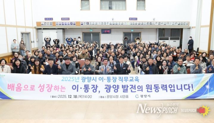 뉴스펀치 김길룡 기자 | 광양시는 지난 18일 시청 시민홀에서 12개 읍·면·동 이·통장 200여 명을 대상으로 2025년 이·통장 직무교육을 실시했다.