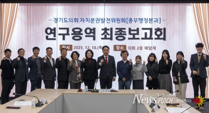 뉴스펀치 김길룡 기자 | 경기도의회 자치분권발전위원회 총무행정분과 이은주 위원장(국민의힘, 구리2)은 18일, '집행기관 견제 강화를 위한 의회 내 상임위원회 조직개편 방안 연구' 최종보고회에 참석해 연구용역 결과를 공유하고 논의했다.