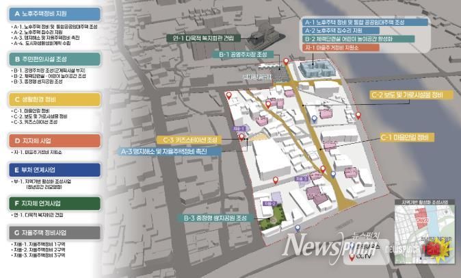 생활환경 정비 사업도 병행한다. 낡고 파손된 마을안길을 정비하고, 보행자 안전을 위한 보도와 가로 시설물을 개선한다. 이를 통해 골목 환경 개선은 물론 아동 양육 가정을 지원하기 위해 보육과 생활 인프라를 확충하게 된다.