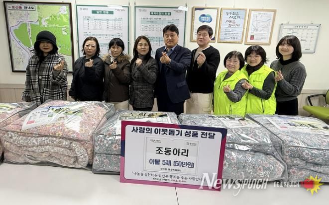 ‘조동아리(좋은 사람들이 모인 동아리 줄임말)’는 지역사회 봉사를 목적으로 결성된 모임으로, 연말 한파에 대비하지 못한 어려운 이웃들이 따뜻한 겨울을 보낼 수 있도록 회원들의 뜻을 모아 이번 후원을 진행했다. 이날 기탁된 이불은 보산동 내 저소득 취약계층 5가구에 전달될 예정이다.