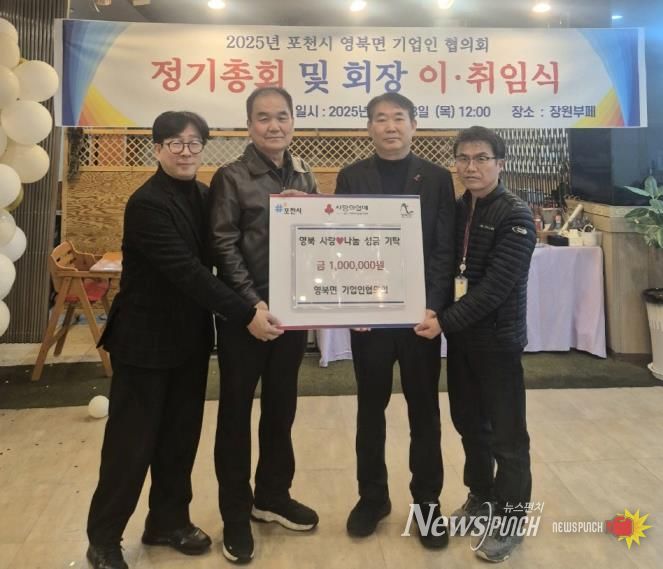 김송학 영북면장은 “지역 기업인들이 자발적으로 뜻을 모아 성금을 기탁해 주신 점에 깊이 감사드린다”며 “기탁된 성금은 목적에 맞게 사용해 도움이 필요한 주민들에게 소중히 전달하겠다”고 밝혔다.