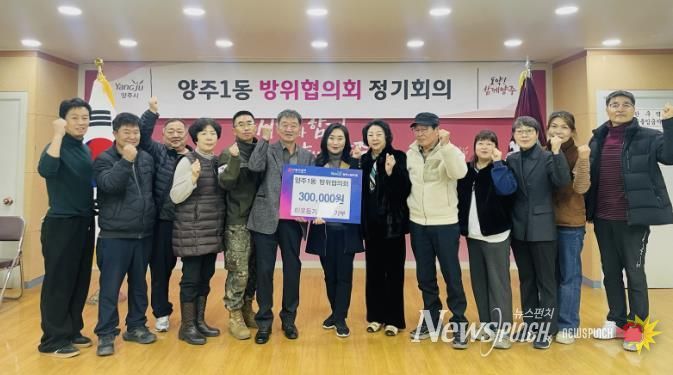 최미영 양주1동장은 “지역 사랑을 실천해주신 양주1동 방위협의회 분에 깊은 감사를 드린다”며, “기부해주신 성금은 어려운 이웃들을 위해 소중히 전달하고, 앞으로도 서로 돕고 보살피는 지역사회가 되도록 협력하겠다”고 말했다.