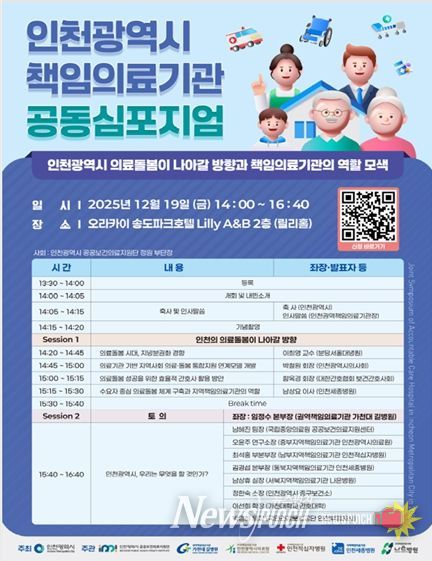 뉴스펀치 김길룡 기자 | 인천광역시는 12월 19일 오라카이 송도파크 호텔에서 인천 소재 5개 책임의료기관 및 인천공공보건의료지원단과 함께 '2025년 인천 책임의료기관 공동 심포지엄'을 개최했다고 밝혔다.