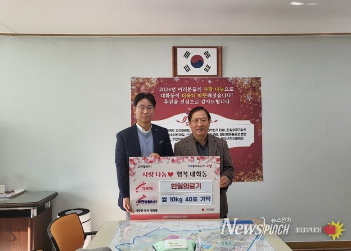 한일의료기 정병문 원장은 “사업장을 개업한 이후 20년 넘게 후원을 이어오고 있으며, 연말을 맞아 어려운 이웃들에게 작은 도움이 되길 바라는 마음으로 쌀을 기탁했다”며 “앞으로도 지역사회와 함께하는 나눔 활동을 이어가겠다”고 말했다.