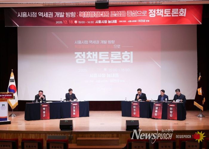 뉴스펀치 김길룡 기자 | 시흥시의회가 12월 18일 시청 늠내홀에서 ‘복합행정타운 조성을 중심으로 한 시흥시청 역세권 개발 방향’ 정책토론회를 개최했다.