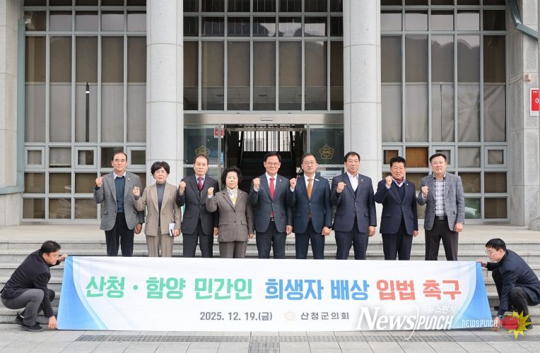 뉴스펀치 김길룡 기자 | 2025년 12월 12일, 산청군의회 김수한 의장과 의원 9명은 "산청·함양·거창 민간인 학살사건"에 대한 국가의 책임을 묻고, 피해자 및 유족에 대한 실질적인 배상과 보상을 위해 특별법 제정 촉구 건의안을 발의했다. 해당 사건은 1951년 한국전쟁 중, 국군의 공비 토벌 작전 중 산청, 함양 지역에서 무차별적인 민간인 학살이 벌어진 참사로, 희생자는 총 705명에 달한다.