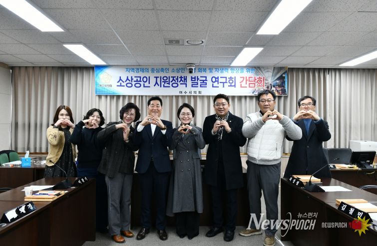 뉴스펀치 김길룡 기자 | 여수시의회 의원연구단체인 ‘소상공인 지원정책 발굴 연구회’(대표의원 민덕희, 소속 의원 이찬기·최정필·김철민·김채경)는 19일 시의회 운영위원회 회의실에서 최종 간담회를 열고, 지난 1년간 추진해 온 소상공인 지원정책 발굴 활동과 그 정책적 성과를 종합적으로 점검했다.