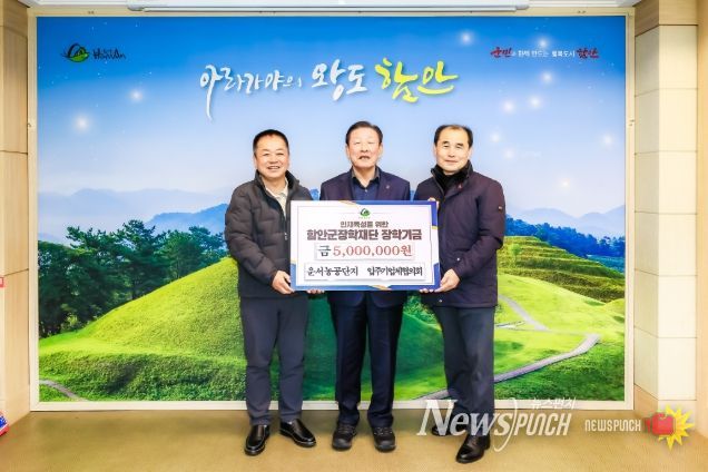 뉴스펀치 김길룡 기자 | 함안군장학재단은 지난 19일 칠원운서농공단지 입주기업체협의회(회장 김동국)에서 장학기금 500만 원을 기탁했다고 밝혔다.
