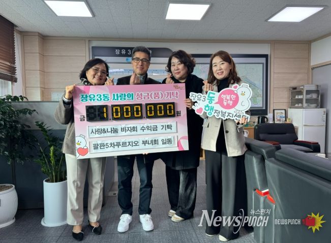 뉴스펀치 김길룡 기자 | 팔판마을5차푸르지오아파트 부녀회는 불우이웃과 결식아동을 돕기 위해 개최한 ‘사랑&나눔 바자회’ 수익금을 성금으로 기탁하며 따뜻한 이웃 사랑을 실천했다.