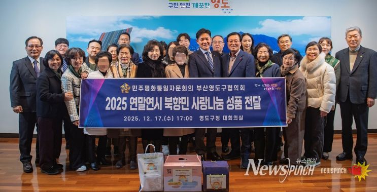 뉴스펀치 김길룡 기자 | 민주평화통일자문회의 부산영도구협의회(협의회장 김창석)가 연말연시를 맞아 지난 12월 17일 영도구청에서 북향민 정착 지원을 위한 사랑나눔 성품 전달식을 개최했다.
