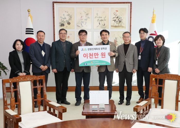 뉴스펀치 김길룡 기자 | 강원특별자치도는 12월 19일 대한한돈협회 강원협의회가 도내 축산분야 후학 양성을 위해 장학금 2천만 원을 기탁했다고 밝혔다.