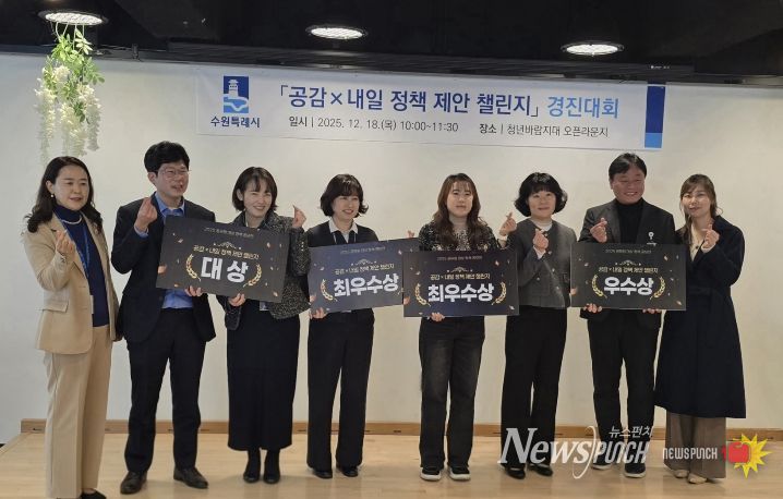 뉴스펀치 김길룡 기자 | 수원특례시가 개최한 ‘2025 공무원 대상 제안 공모전 '공감×내일 정책 제안 챌린지' 경진대회’에서 ‘신(新)사장 과태료 0원 프로젝트(찾아가는 원산지 안심 컨설팅)’가 대상을 받았다.