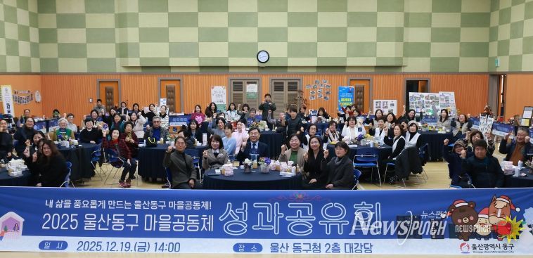 뉴스펀치 김길룡 기자 | 울산 동구는 12월 19일 오후 2시 구청 2층 대강당에서 2025년 마을공동체 성과공유회를 개최하고 한 해 동안의 마을공동체 활동 성과를 공유하는 뜻깊은 시간을 가졌다.