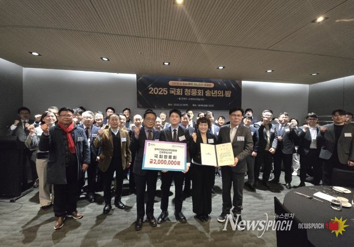 뉴스펀치 김길룡 기자 | 국회 청풍회(회장 윤미혜)가 2025년 12월 18일, 지역 인재양성을 위한 뜻깊은 나눔의 일환으로 200만 원의 기금을 충북인재평생교육진흥원에 기탁했다.
