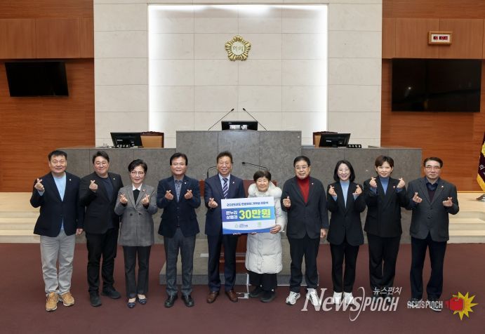 뉴스펀치 김완규 기자 | 서울특별시 금천구의회는 ‘2025 서울시 구의원 한마음체육대회’에서 권역대항경기 준우승으로 받은 상금(온누리상품권 30만원)을 지역사회 나눔에 활용하며 따뜻한 연대를 실천했다.