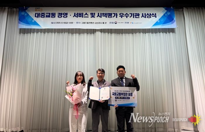 뉴스펀치 김길룡 기자 | 수원특례시가 국토교통부가 주최하고, 한국교통안전공단이 주관하는 ‘대중교통 시책평가’에서 우수 지자체로 선정돼 국토교통부 장관상을 받았다. 수원시는 7회 연속 우수기관으로 선정되는 성과를 거뒀다.