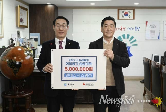 뉴스펀치 김길룡 기자 | 홍성군 내포도시첨단산업단지 내 신규로 입주하여 공장을 준공한 엔에스시스템㈜이 지난 19일 ‘희망 2026 나눔 캠페인’에 성금 500만원을 기탁하여 지역 이웃과 함께하는 나눔문화 조성에 힘을 보탰다.