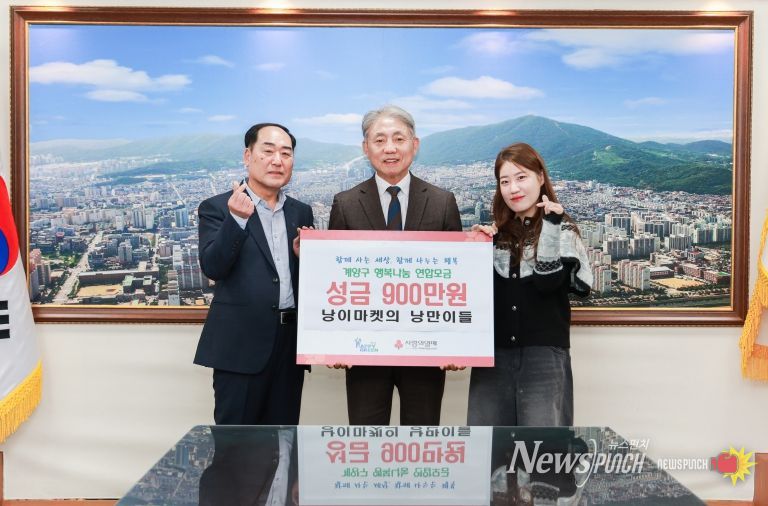 뉴스펀치 김길룡 기자 | 인천광역시 계양구는 낭이마켓(대표 정수미)이 지역 내 취약계층 지원을 위해 성금 900만 원을 기탁했다고 밝혔다.