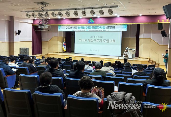 뉴스펀치 김길룡 기자 | 함양군은 심각한 농촌 인력난 해소와 농가 경영 안정을 지원하기 위해 지난 20일 함양군농업기술센터 2층 농업인교육관에서 ‘2026년도 외국인 계절근로자 프로그램 사업설명회’를 개최했다고 밝혔다.