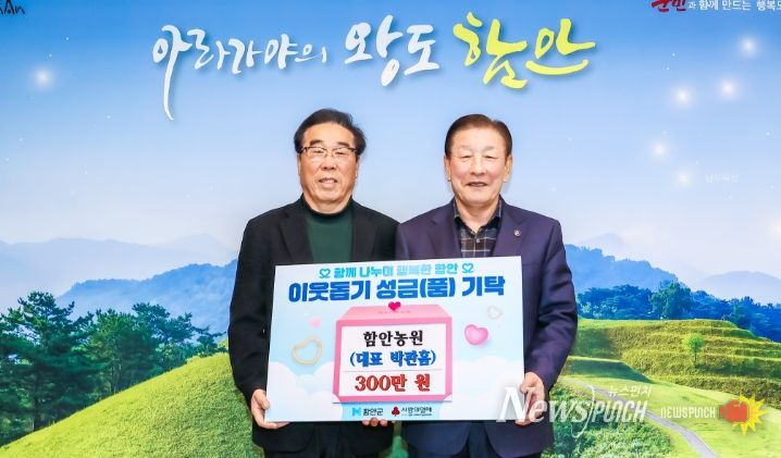 뉴스펀치 김길룡 기자 | 함안군은 지난 22일 함안농원(대표 박관흠)에서 연말을 맞아 성금 300만 원을 기탁했다고 밝혔다.