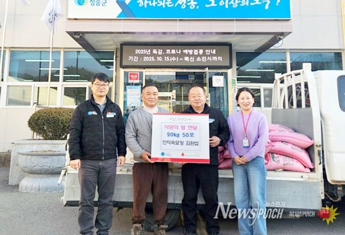뉴스펀치 김길룡 기자 | 청송군 안덕면 소재 안덕육묘장 김완섭 대표는 연말을 맞아 지역 내 어려운 이웃들을 돕기 위해 쌀 1,000kg(20kg 50포)을 안덕면에 기탁했다.