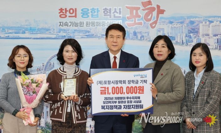 포항시는 2025년 자활사업 우수 지자체로 선정되어 보건복지부 장관 표창을 수상했으며, 이에 따른 포상금 100만원을 지역 인재 양성을 위해 포항시장학회에 장학금으로 기탁했다.