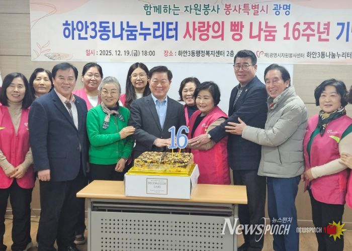 뉴스펀치 김길룡 기자 | 광명시 하안3동 나눔누리터는 광명시자원봉사센터, 하안3동 행정복지센터와 함께 지난 19일 하안3동 행정복지센터 2층 회의실에서 ‘사랑의 빵 나눔’ 16주년 기념식을 개최했다.