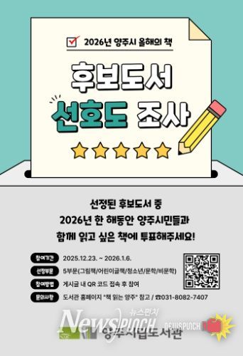 뉴스펀치 김길룡 기자 | 양주시가 오는 12월 23일부터 2026년 양주시 『올해의 책』 선정을 위한 시민 설문조사를 실시한다.