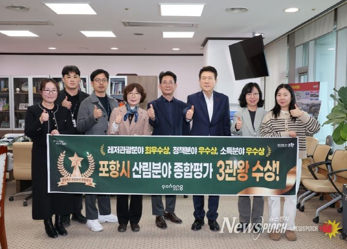 뉴스펀치 김길룡 기자 | 포항시가 2025년 경상북도 주관 산림분야 시군 종합평가에서 산림레저관광 분야 최우수, 산림소득 분야 우수, 산림정책 분야 우수를 수상하며 산림행정 전 분야를 석권하는 성과를 거뒀다.