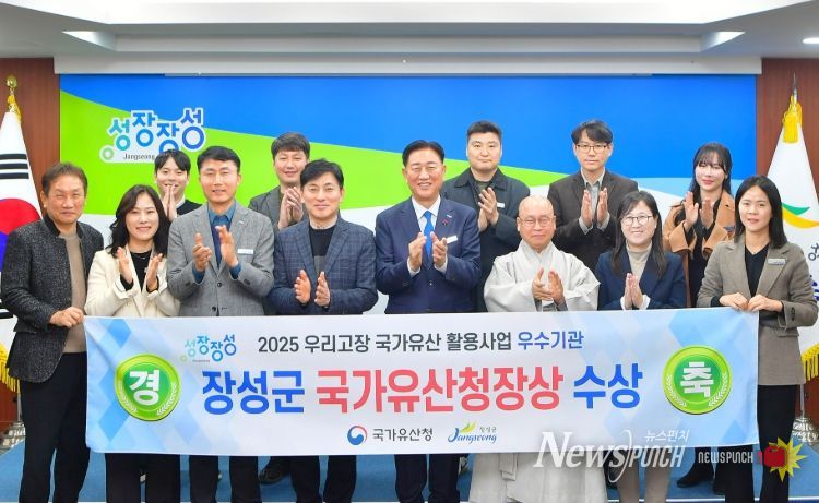 뉴스펀치 김길룡 기자 | 장성군이 국가유산청 공모사업인 ‘우리고장 국가유산 활용사업’ 전통산사 문화유산 활용사업 분야에 2년 연속 우수기관으로 선정되며 국가유산청장상을 받았다.
