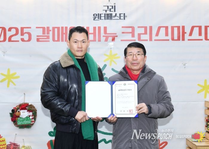 뉴스펀치 김길룡 기자 | 구리시는 지난 12월 20일 ‘2025 구리 윈터페스타–갈매애비뉴 크리스마스마켓’ 행사장에서 갈매애비뉴 상권 상인회에 ‘골목형상점가 지정서’를 교부하고, 상인들과 소통의 시간을 가졌다고 밝혔다.